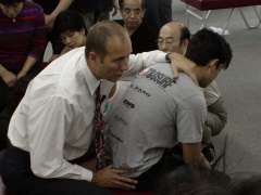 2005年7月17日(日)・18日(月)、大阪にて、「カイロプラクティック四肢関節テクニック」をテーマに、英国アングロ・ヨーロピアンカイロプラクティック大学のDr.ブルームをお招きし、CEAセミナーが開催されました。カイロプラクティックの診断段階で注目するポイントから始まり、肩・上肢帯・肘・手における個々の関節の動きの検出、アジャストメントについて熱心な講義、指導が行われました。 また、Drスウィニーによる特別講演「カイロプラクティックが担う世界的責任と日本への影響」も行われたました。 |